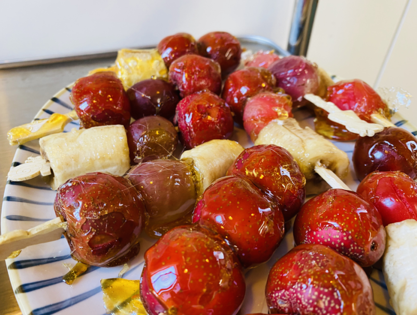 | Food made: sugar-coated haws on a stick |