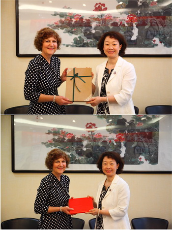 On the morning of May 27, teachers of Beijing Normal University Experimental Primary School held a grand welcoming ceremony for Principal Mierisch. Principal Huang of Beijing Normal University Kindergarten accompanied Principal Mierisch during the whole reception. After the reception, Principal Huang and Du Jun, the executive principal at BNUK headquarters, hosted a forum discussing the topic of “school leadership development” with Principal Mierisch. Principal Mierisch toured the school, observing computer/whiteboard teaching activities, music class, PE class, and others.