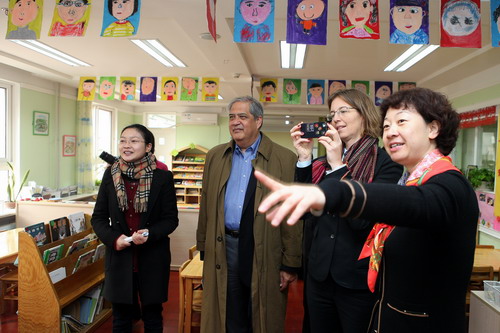 The leadership visited our school culture wall, children’s library, history exhibition and “Beijing Spring” children’s works exhibition, then went into classrooms to interact with the children. Afterwards, we had a discussion in meeting room. Principal Jim Scott praised our beautiful environment as well as the children’s morning exercises, etc. He was delighted to see how our teachers had implemented what they had learned at Punahou School. He believes there are many similarities between our kindergarten and the younger grades at Punahou. On behalf of kindergarten our principal, Huangshan, offered heartfelt thanks to Punahou School for providing valuable resources for our teachers’ professional development. After this, the two schools held discussions about future collaboration.