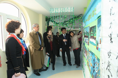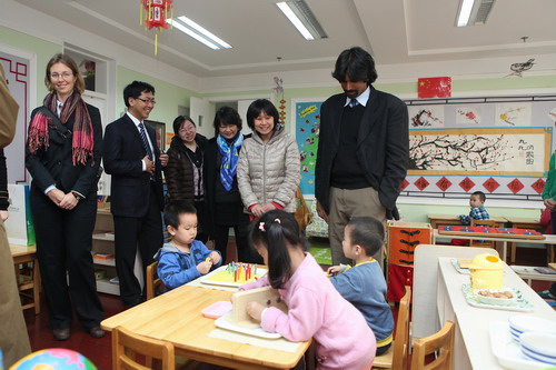 Punahou School principal, Jim Scott, director and vice-director of Wo International Center, Emily and Chei, visited our kindergarten on March 27, 2013.