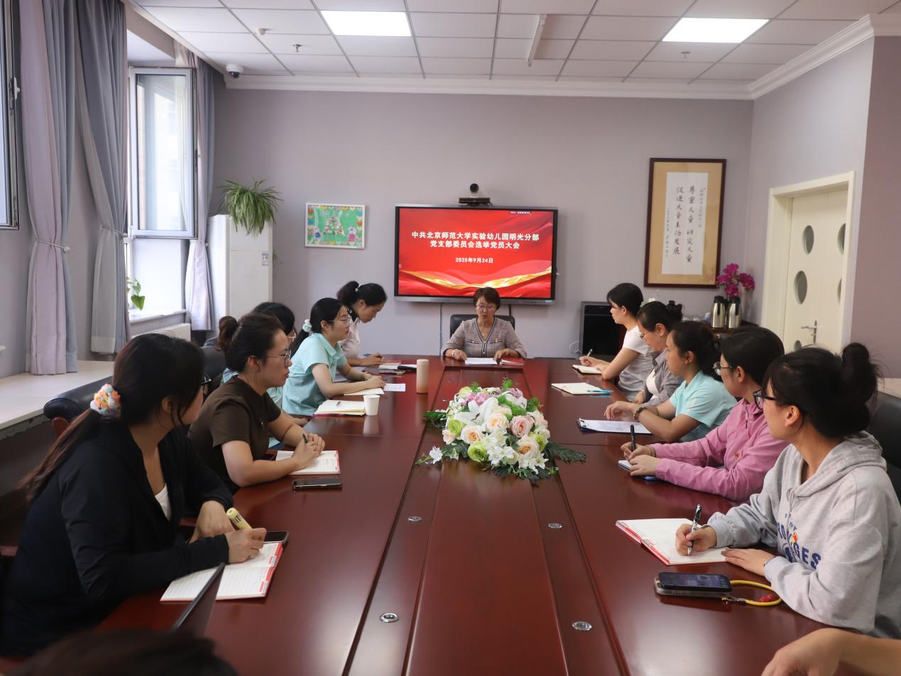 2025年9月24日,正规滚球app官方网站明光分部党支部在北楼会议室召开全体党员大会,选举产生了第一届支部委员会。幼儿园党委组织员李平平列席会议。明光分部12名党员同志现场参会。