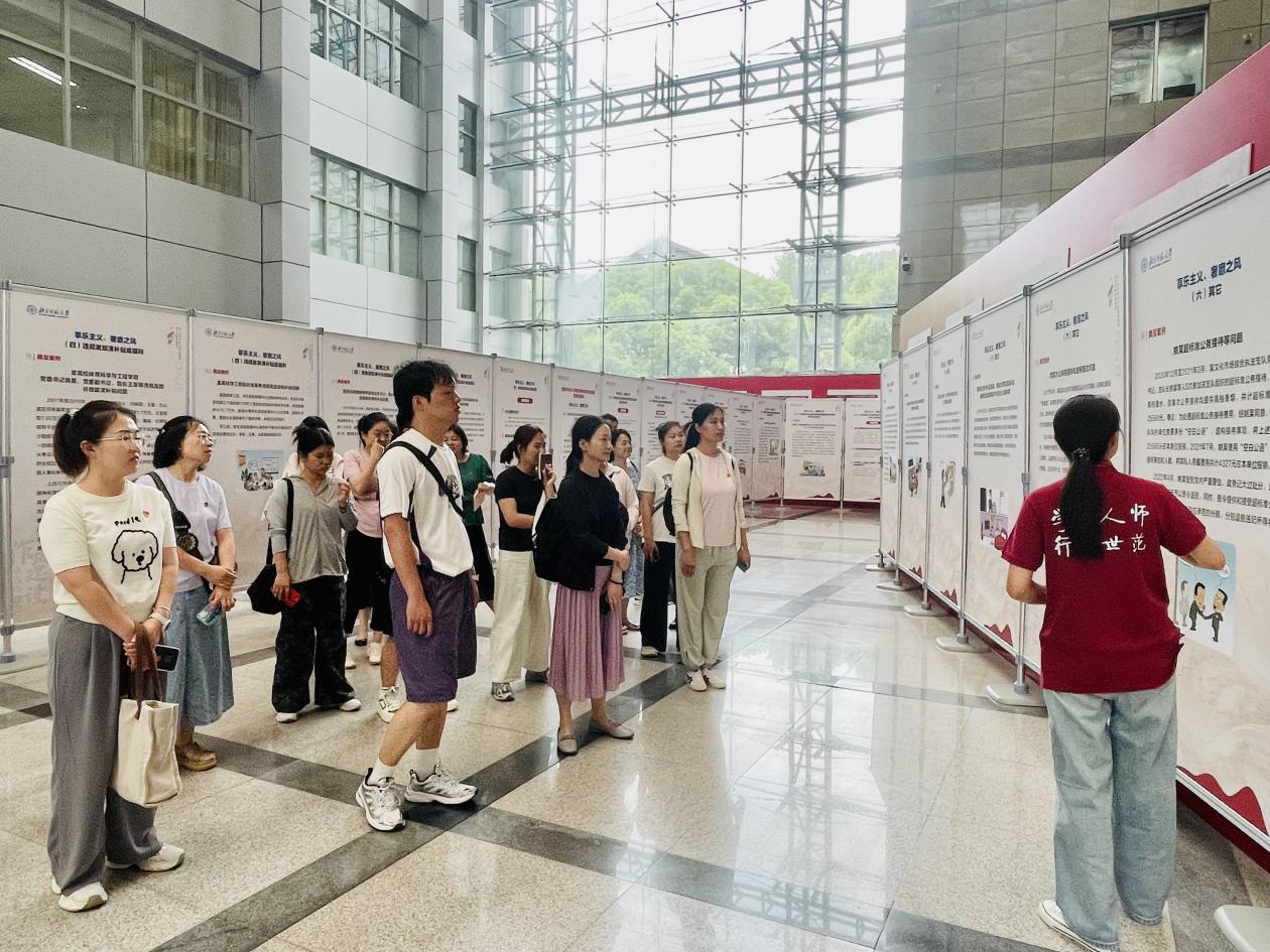 本次展览分为三个部分,全面展示了党的作风建设的重要性和紧迫性。在第一部分“习近平总书记关于加强党的作风建设的重要论述(选摘)” 中,党员教师们认真学习了习近平总书记关于作风建设的一系列重要讲话精神。第二部分 “中央八项规定的制定实施和贯彻落实中央八项规定精神取得的成效”,通过详实的数据和生动的案例,展现了自中央八项规定实施以来,党风政风社风发生的巨大变化。在“违反中央八项规定精神的突出表现及典型案例”部分,一个个触目惊心的案例给党员教师们敲响了警钟,深刻揭示了违反中央八项规定精神的严重危害。