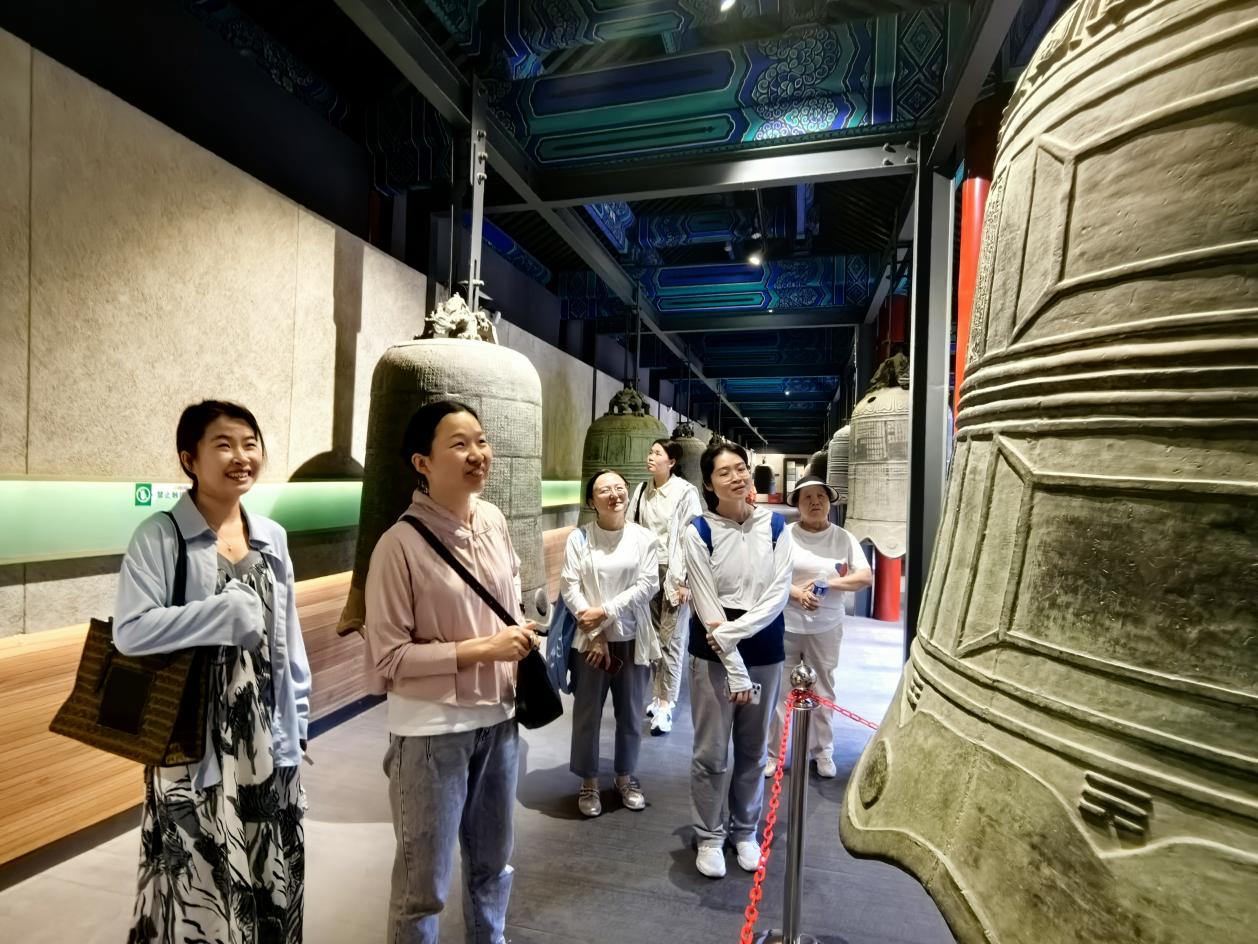 大钟寺古钟博物馆原名觉生寺,始建于清雍正十一年,因寺内珍藏一口明永乐年间所铸巨大佛钟,故又俗称“大钟寺”。 参观过程中老师们认真聆听讲解,其中两个故事让大家印象深刻。一是是六鋬铜锅的故事,六鋬铜锅是当时觉生寺内僧人用的炊具,因为是乾隆时期的物件,也是我国的重要文物,当时日军掠夺了很多铜和铁作为军用物资,方丈和几个小和尚将这口锅深埋才得以保存。六鋬铜锅是中国人民抗击侵略的历史见证,这种社会责任感和担当精神值得滚球app学习。二是“歪钟”的故事,相传此钟为大奸臣魏忠贤所铸,由于设计缺陷,这口钟无论从哪面看都是歪的,民间说法是魏忠贤人不正,铸出来的钟也是歪的。所以这口钟也被后人称之为警钟,警示后人要堂堂正正、清清白白地做人。