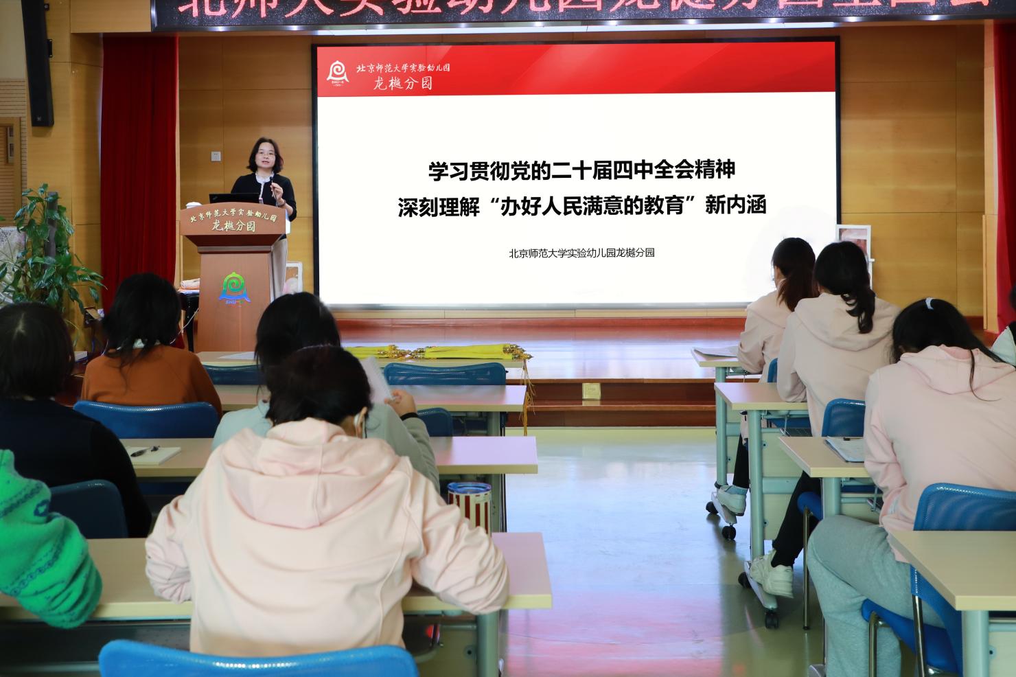 为深入学习领会、全面贯彻落实党的二十届四中全会精神,将“办好人民满意的教育”的时代要求融入学前教育日常实践,2025年12月11日,龙樾分园党支部书记熊庆华以《学习贯彻党的二十届四中全会精神,深刻理解“办好人民满意的教育”新内涵》为题进行了专题党课,旨在引导全体党员教师统一思想、提高站位,坚守教育初心,担当育人使命,共同推动幼儿园保教工作高质量发展。