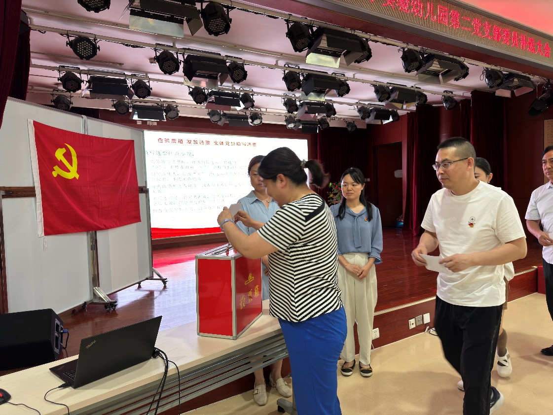 首先,组织委员赵庆楠介绍了本次增补委员的背景:因第二党支部委员会委员工作岗位变动,在任期内出缺,经与上级党委请示,同意召开党员大会进行委员补选。随后大会通过了选举办法、监票人计票人及委员候选人名单,并进行了3选2的差额选举,最终经支部大会选举增补了丁乐和荣柏莹两位委员。