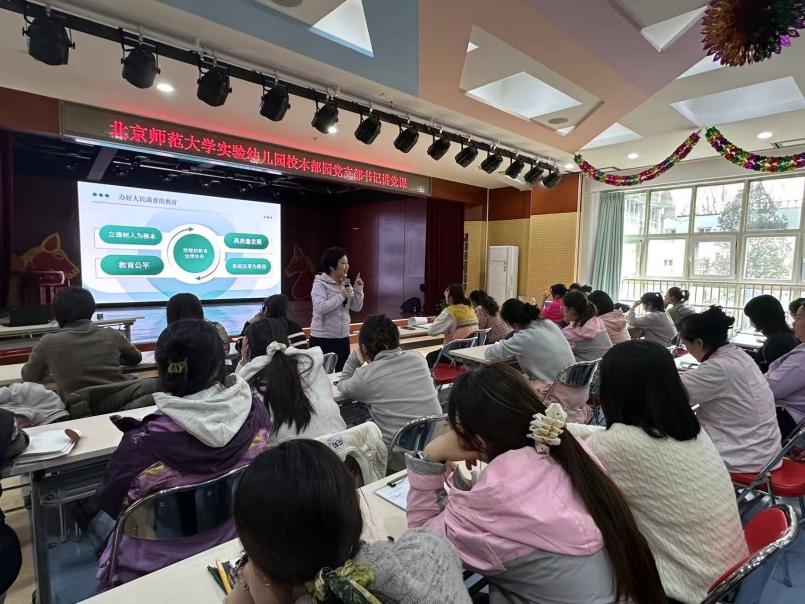 为深入学习贯彻党的二十届四中全会关于教育工作的最新部署要求,推动幼儿园党建工作与保教实践深度融合,2025年12月26日,正规滚球app官方网站校本部园党支部组织开展专题党课学习活动。党支部书记滕瑾同志以《学习·探索·思考——办好人民满意的教育》为主题进行讲授,全体党员、入党积极分子及教职工参加了此次学习。