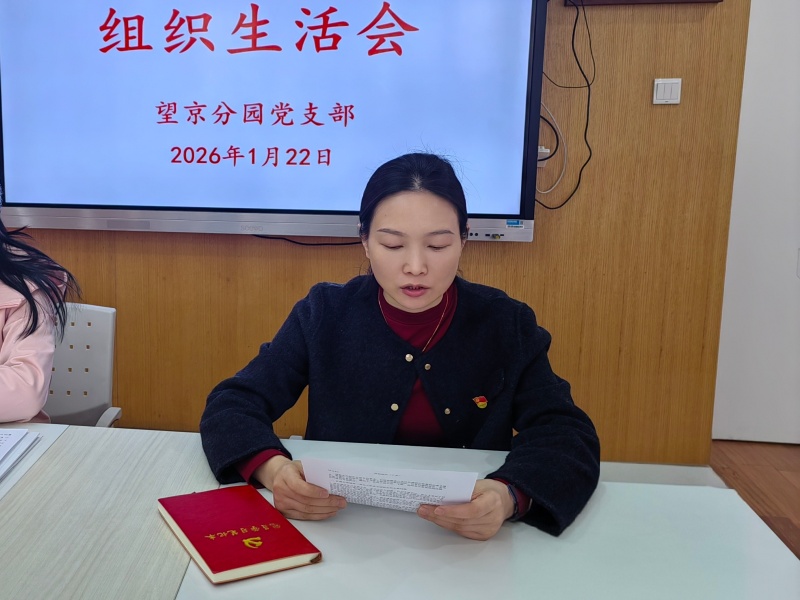 2026年1月22日,望京分园党支部在园内会议室召开组织生活会并开展民主评议党员工作。会议由党支部组织委员谢红玉主持,全体党员9人参会,集团党委委员鞠亮同志列席指导。