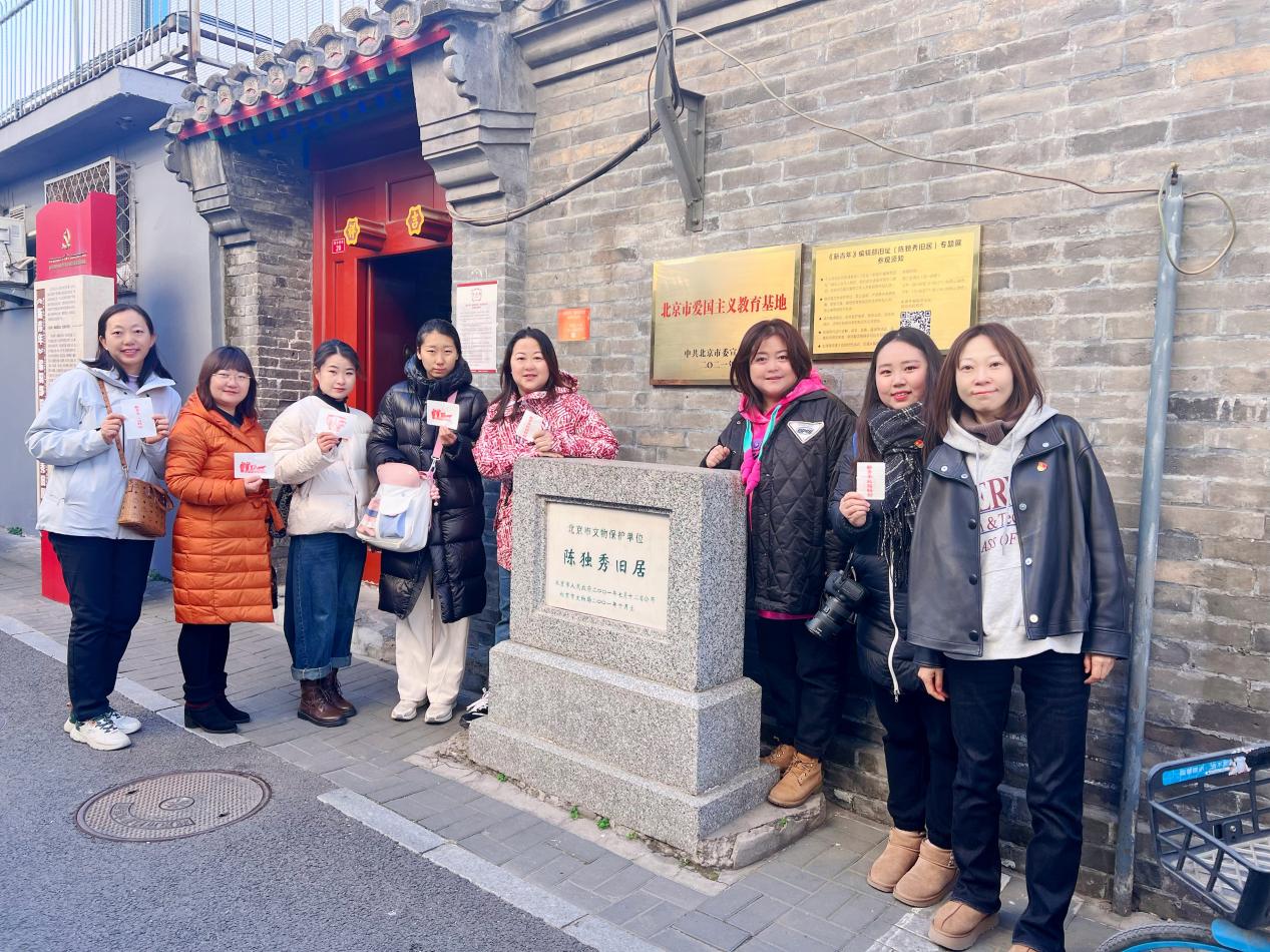 《新青年》编辑部旧址位于东城区北池子大街箭杆胡同20号,是1917年陈独秀在北京大学任教时的寓所,也是新文化运动主阵地之一,马克思主义在中国早期传播的重要场所。走进这座100年前的四合院,党员同志们仿佛置身于那个风雨如磐的年代,耳边回想起陈独秀、李大钊、胡适等革命志士为寻找救国救民之路所发出的有力声音,电视剧《觉醒年代》中的场景历历在目。在讲解员的引导下,党员同志们参观了“历史上的《新青年》”和“陈独秀在北京”两个专题展,进一步理解了《新青年》杂志对于新文化运动、马克思主义在中国的广泛传播的重要意义,更感受到面对国家的混乱、民族危亡、人民贫苦,进步青年的觉醒、求索与初心。