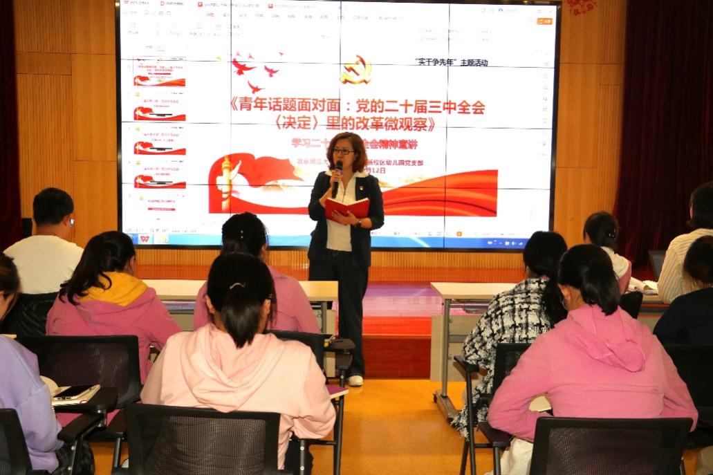 为深入贯彻党的二十届三中全会精神,全面学习习近平总书记关于全面深化改革的一系列新思想、新观点、新论断。2024年10月12日,正规滚球app官方网站新校区幼儿园党支部召开了“学习党的二十届三中全会精神”党员主题党日活动,全体党员以及部分积极分子参加会议。