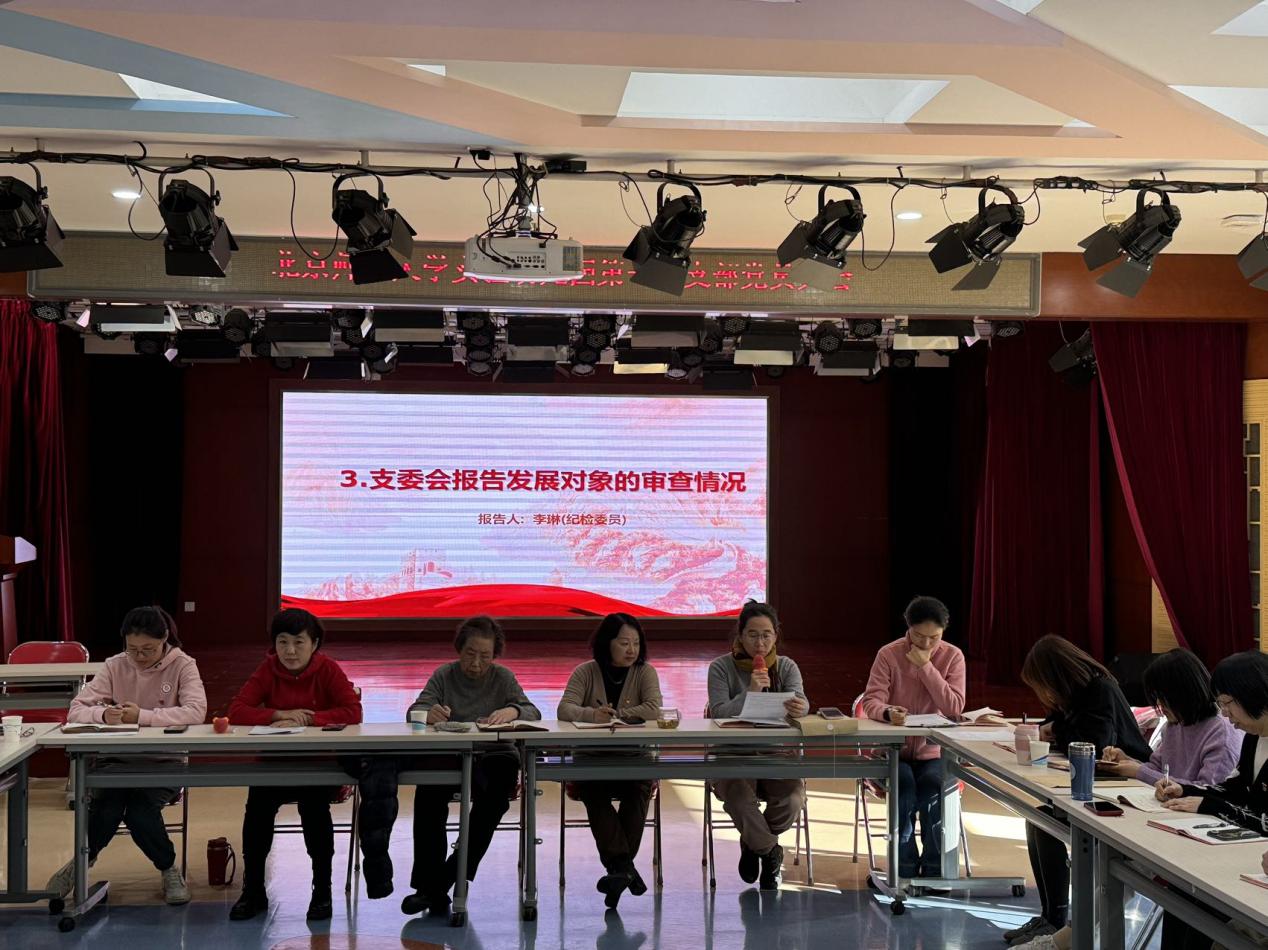 会议在庄严的国歌声中拉开帷幕,首先由罗楠同志宣读入党申请书,汇报个人情况、对党的认识、思想发展过程等。其次,入党介绍人向大会介绍对罗楠同志的培养情况,第一党支部纪检委员李琳宣读政审意见,与会党员充分发表意见。大家对罗楠在日常工作中认真负责,严谨踏实的工作状态给予肯定,对于罗楠在人生不同阶段展现出的优秀的表现给予认可。并对罗楠同志在发挥示范引领和增强创新精神上提出更高要求。经无记名投票,全体党员中32人同意吸收罗楠同志发展成为预备党员。罗楠同志感激大家对她在工作中表现的肯定,同时表示在今后的工作生活中将以身作则,带领身边的人朝着更加优秀的方向努力。
