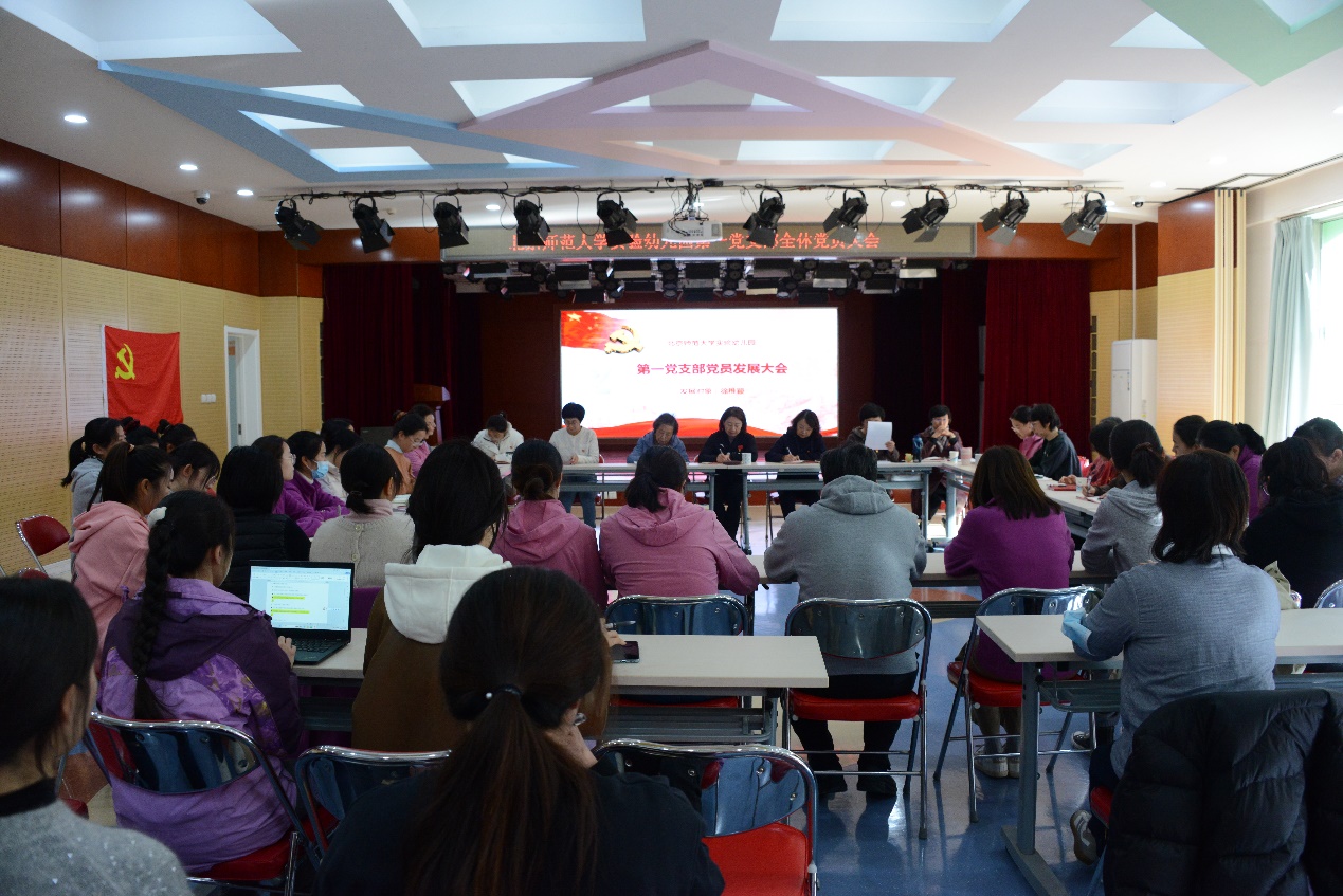 2023年11月10日,正规滚球app官方网站第一党支部在校本部园多功能厅召开全体党员大会,主要讨论发展徐稚颖同志加入党组织和王伟莹同志预备党员转正两项事宜。本次大会由北京市师范大学实验幼儿园第一党支部宣传委员滕瑾主持,正规滚球app官方网站黄珊书记和北京师范大学特邀组织委员金秀荣老师出席会议。