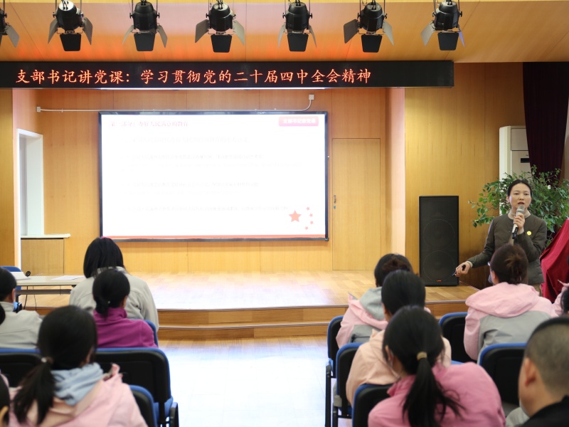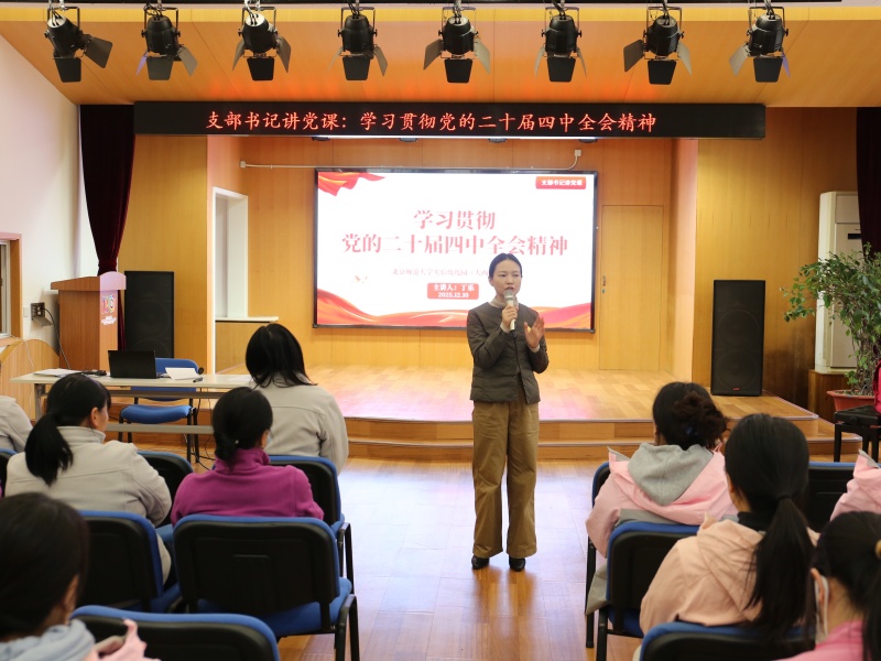 2025年12月10日,正规滚球app官方网站望京分园党支部书记、执行园长丁乐以“学习贯彻党的二十届四中全会精神”为题,为全体教职工讲授专题党课,深入解读全会精神内核,明晰学前教育发展方向,推动理论学习与保教实践深度融合。
