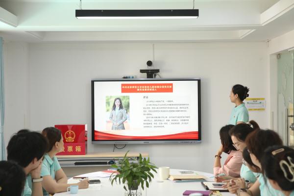 随后,耍媛媛同志宣读《正规滚球app官方网站龙樾分园党支部支部委员会选举办法》,根据筹备组建议提名钱丽娟为监票人、冷思阳为记票人,经全体党员讨论后,以举手表决方式一致通过。主持人详细介绍6名候选人(差额1名)的基本情况,保障党员充分了解候选人背景。