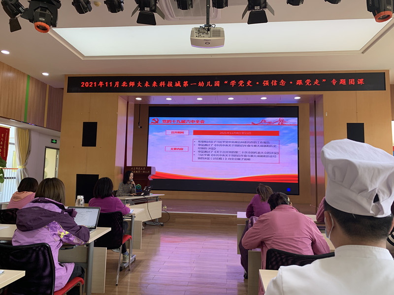 2021年11月24日,北京师范大学未来科技城第一幼儿园团支部开展“学党史·强信念·跟党走”主题团课,全体团员教师、党员、入党积极分子、入党申请人员共27人参会。团支部书记张珺和未来一幼执行园长、党小组组长杨海燕结合中国共产党的重要会议和党史的重要事件,围绕中国共产党十九届六中全会重要文件精神和“五四运动中的滚球app”等内容深入展开。团员教师现场交流学习心得,通过学习与交流,党团员教师了解了国家重大方针政策,明晰了党的百年奋斗中滚球app为什么能够成功?未来滚球app怎样才能继续成功?党团员教师纷纷表示要进一步弘扬伟大建党精神,传承“十个坚持”宝贵经验,赓续红色血脉,全面贯彻党的教育方针,落实立德树人根本任务,在为党育人、为国育才上努力奋斗,谱写新时代幼儿教育的新篇章。