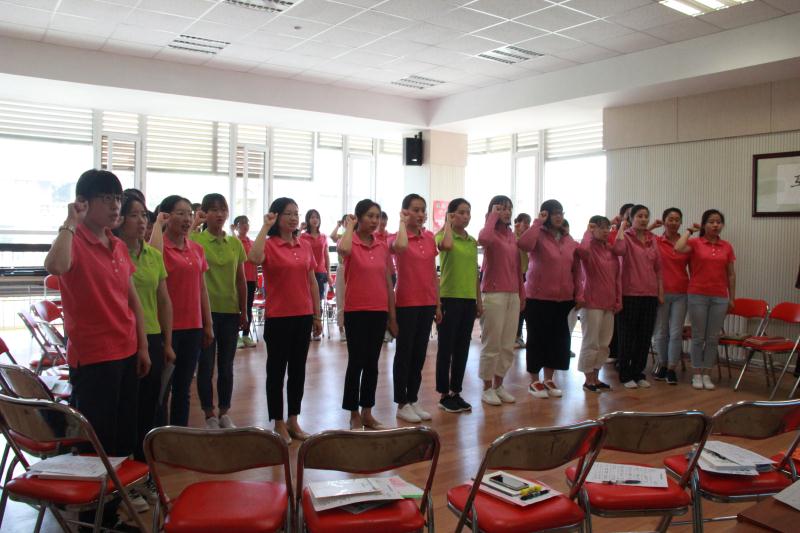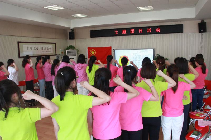 全体团员教师共同唱响《中国共青团团歌》、重温入团誓词