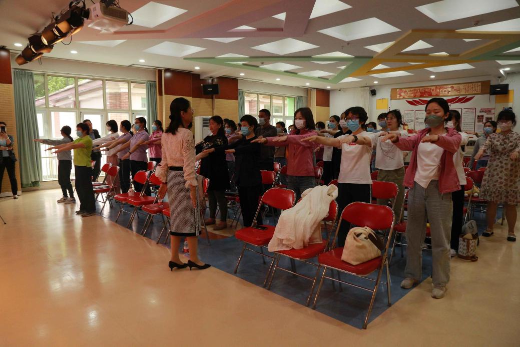 杜冰院长将中医养生原理娓娓道来,从对健康的认识、基于“五自”的健康必由之路、五藏是生命的分类系统、经络是生命的“软件”系统及经络导养法五个方面对教师健康自我管理进行了详细诠释。理论讲座后,十方泰和中医研究院医师团队带领教职员工学习预备式、摆臂贯通法、擦胸抹肋法、推心置腹法、揉腹透热法、叩中府法、搓双肾法及搓涌泉法等常用的经络养生法,并进行了现场指导。