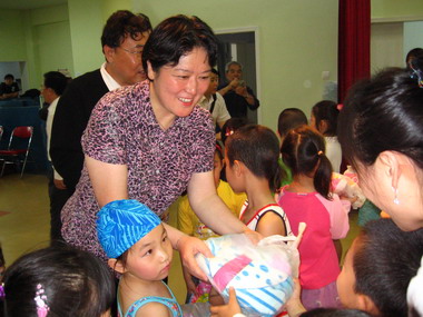 樊校长亲切给小朋友送礼物