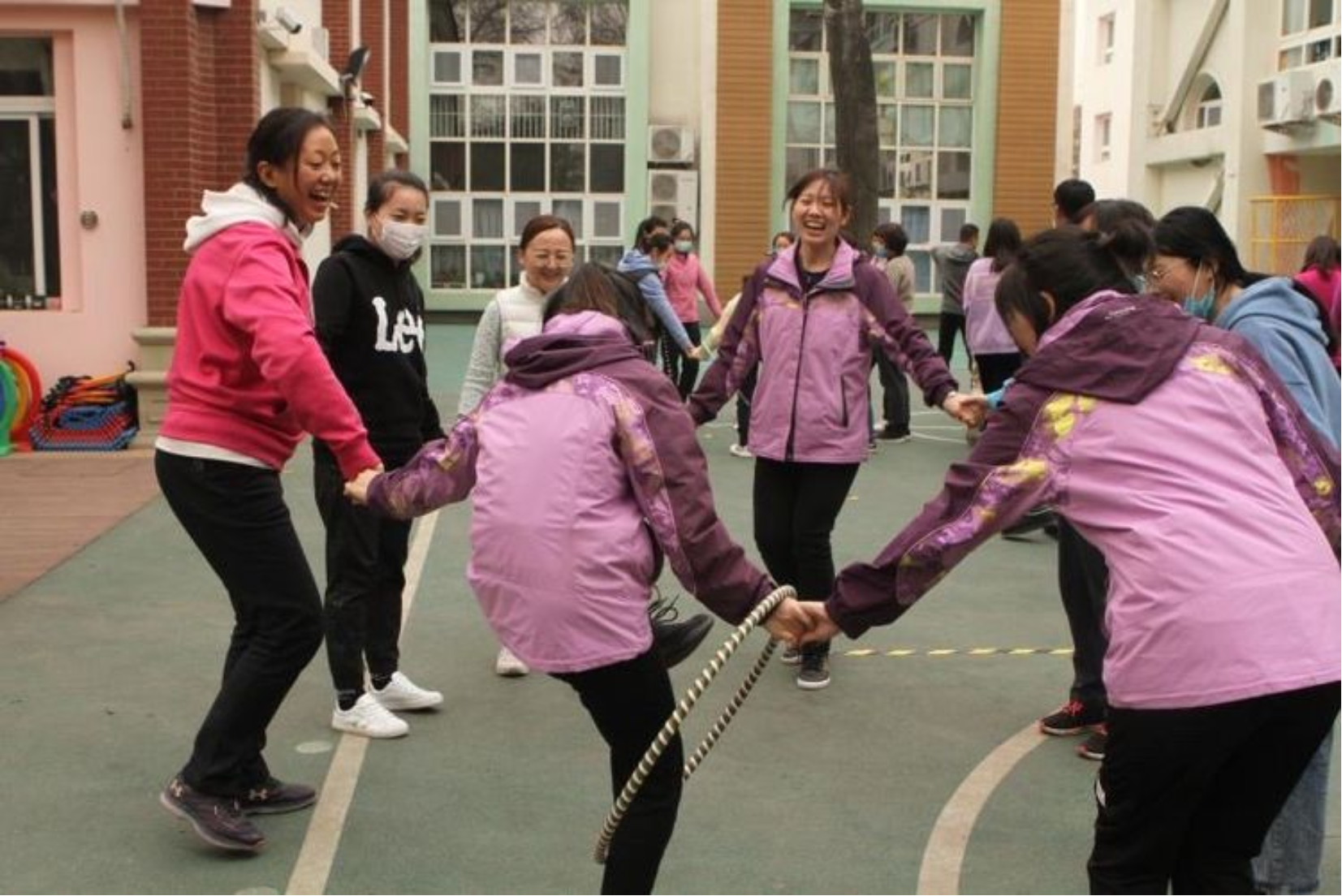 2021年3月8日,我园以一场别开生面的运动会作为“三八”妇女节的特别献礼,让老师们度过了一段充满欢笑和活力的午间时光。全园100余名教职工积极报名,运动项目既有跳绳、踢毽子、跳皮筋等传统小游戏,也有套圈需要同心协力的项目。运动会不仅锻炼了身体,也让老师们体验到重返童年游戏的快乐!