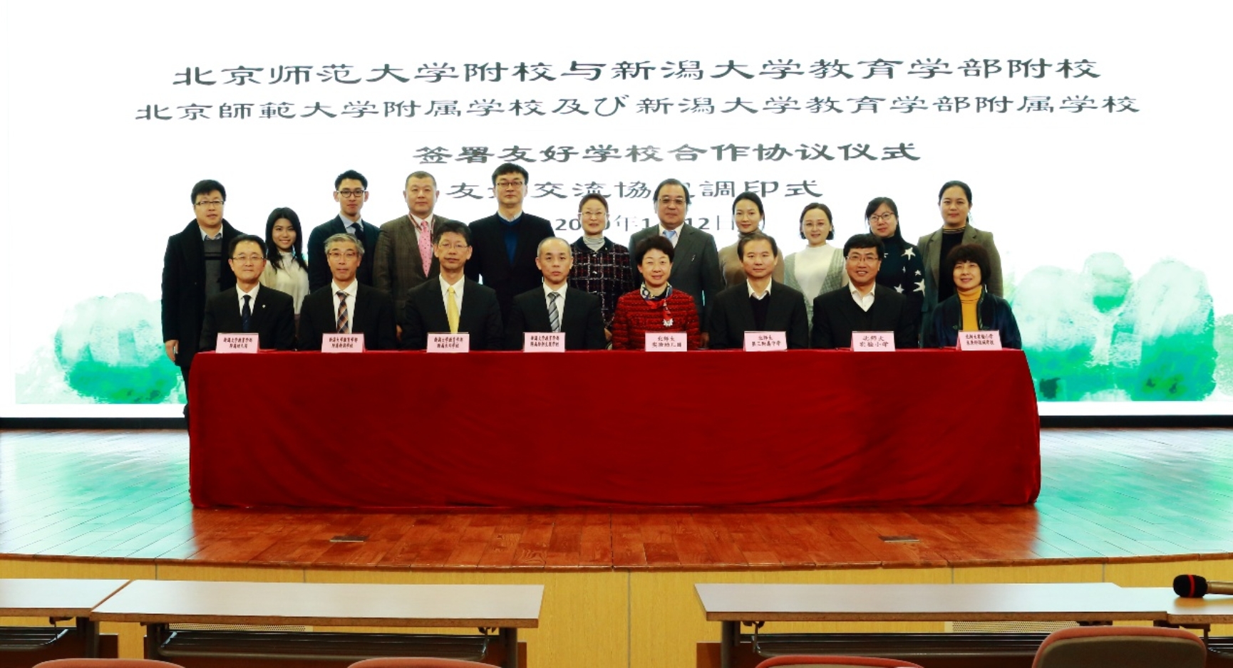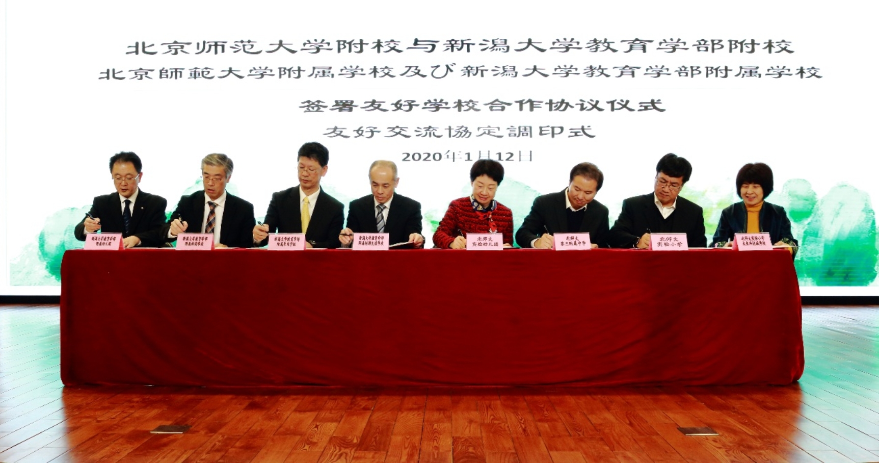 2020年1月12日下午,北京师范大学附校与日本新潟大学教育学部附校友好学校协议签署仪式在滚球app实验小学隆重举行,我园总园长黄珊代表幼儿园签署了合作协议。参加签约仪式的还有:新潟大学理事、副校长大浦容子、新潟大学大学院教育实践学研究科教授相庭和彦、新潟大学大学院教育实践学研究科副教授云尾周、滚球app教育学部副教授姜星海,以及中日双方七所学校的校长及老师们。中日双方共计18人参加活动。 中日双方学校约定未来将在校际教师专业交流、儿童及学生互访、学术信息及资料共享以及开展有利于促进双方教育理解的项目等方面开展合作。我方学校包括正规滚球app官方网站、滚球app实验小学、滚球app第三附属中学、滚球app实验小学未来科技城学校在内的四所学校,日方学校包括新潟大学教育学部附属幼儿园、新潟大学教育学部附属新潟小学校、新潟大学教育学部附属长冈小学、新潟大学教育学部附属新潟中学、新潟大学教育学部附属长岗中学、新潟大学教育学部附属特别支援学校在内的6所学校。