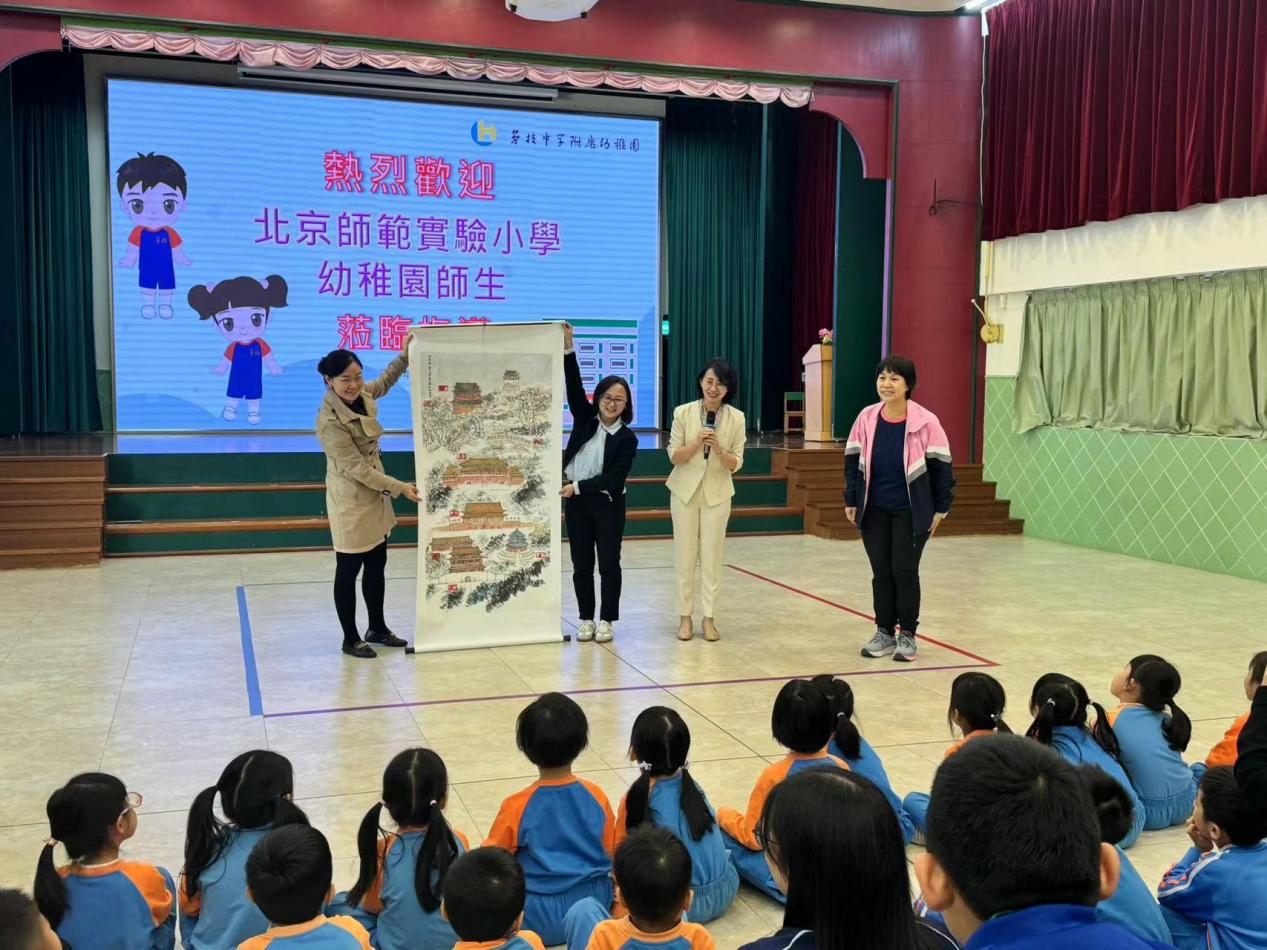 活动后,夏华颖总园长为澳门幼稚园师生赠送由正规滚球app官方网站师生制作的“北京中轴线配对游戏套盒印章”及由滚球app艺术传媒学院的热心家长创作的北京中轴线画作。金瑛老师向幼稚园的师生介绍了北京中轴线的相关背景,以及正规滚球app官方网站开展的“搭建中轴线建筑”系列活动,赢得现场师生阵阵掌声。