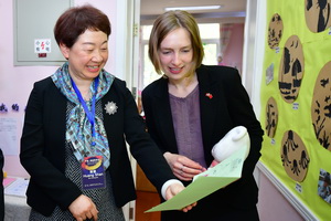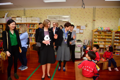 黄珊总园长热烈欢迎挪威代表团的到来,简要介绍了幼儿园的基本情况,带领来宾参观了图书馆,并进入到班级实地观察交流。在与来宾的座谈中,就师幼比、幼儿语言学习、教师培训、幼儿园管理等方面,园长解答了来宾的疑问,来宾们对我园幼儿的快乐自主、积极投入以及热情好客印象尤为深刻,并多次表达了希望能够进一步推进我园与挪威高质量学前教育机构确立友好关系。