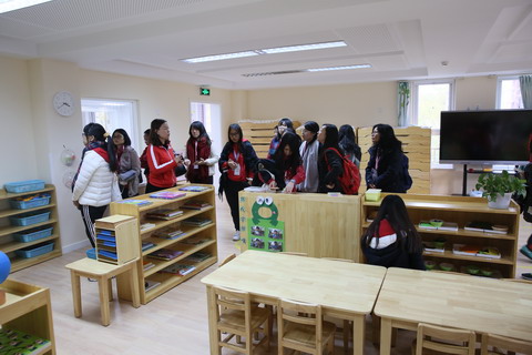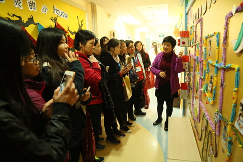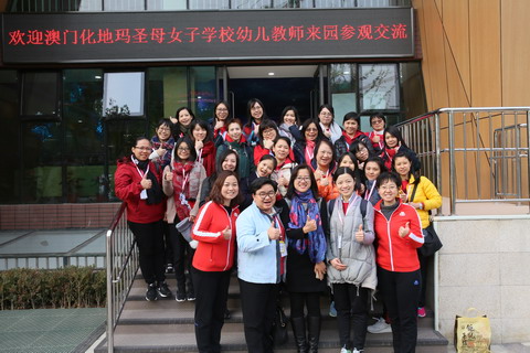 | 应中央政府驻澳门联络办以及北京师范大学国际交流处的相关安排,2017年10月31日,我园接待了澳门化地玛圣母女子学校幼儿园教师团队的来访,一行26人上午访问了校本部园,下午访问了龙樾分园。 澳门化地玛圣母女子学校是由“天神之后传教女修会”创办的一所天主教私立学校。来我园的访问系该团在北京交流访问其中的一站。该团来北京交流旨在加强澳门与内地教育的交流合作,增进该校教师对中国历史和国情的认识。 本着促进双方的了解以及友好交流的精神,我园总园长黄珊、校本部园执行园长杜军、龙樾分园执行园长吴媛媛热情接待了来宾,带领来宾参观了园所公共环境、图书馆,并进入班级实地观摩了孩子的教育教学活动等。