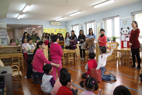 在幼儿园大门口,黄珊总园长和杜军园长首先对来访的香港客人表示热烈的欢迎。随后,两位保教主任邱守和杨海燕分别带领一组客人参观了幼儿园的楼道环境、班级环境以及图书馆环境。最后,在轻松愉快的氛围中,我园领导与香港客人在多功能厅进行了座谈,黄园长向客人介绍了我园在环境、课程、教师队伍建设以及国际影响力等方面的特色,并与杜园长一起回答了客人感兴趣的问题。
