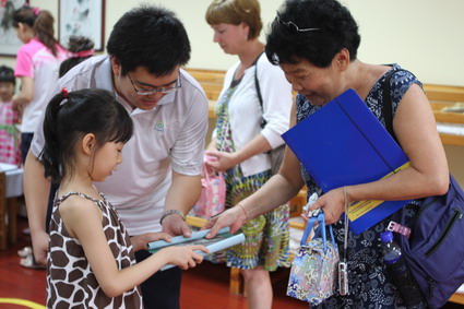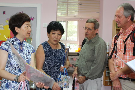 在班级中,孩子们热情地送出自己制作的纸粽子、五彩绳、国画等礼物给外宾。外宾还发现我园教师从普纳荷学习回国后,在班级里进行的新尝试、新做法,对此表示出高度赞许,认为这反映出幼儿园高品质的管理以及教师良好的专业素质。