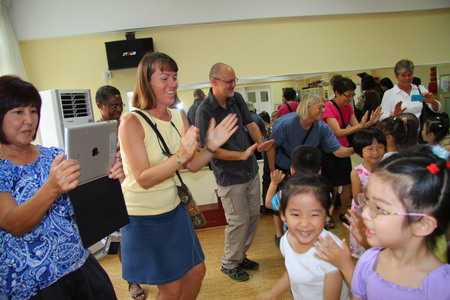 外宾观摩、参与孩子们的音乐游戏活动