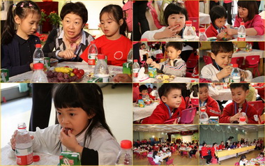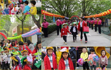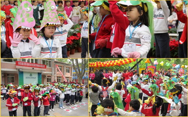 9点钟,在轻快音乐的伴随下和小朋友们的欢迎声中,维多利亚幼儿园的小朋友在老师和家长的陪伴下走进校本部园。来自香港的小朋友头戴各种自制的奇特头饰,在喷泉前为全体师生表演了热情洋溢舞蹈《快乐的一天开始了》和恐龙舞。接着,我园小朋友邀请香港的小客人跳了“可爱小朋友”和“小飞侠”舞蹈,音乐游戏《木头人》将孩子间的互动推向了高潮。