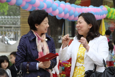 2011年4月26日上午,全园师生隆重接待了来自友好园香港维多利亚教育机构的近二百名小朋友、家长及老师的来访。黄珊园长和校本部园执行园长杜军全程陪同此次随访的维多利亚教育机构总校长孔美琪、香港特别行政区东区区议会主席丁毓珠女士和督学甘谢碧珠女士参观。