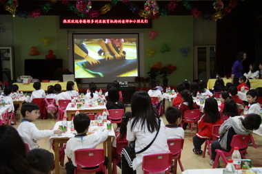 香港小朋友聚精会神看幼儿园的宣传片