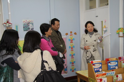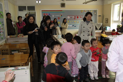 2010年4月8日下午,黄珊园长和本部执行园长杜军接待了来自香港教育学院幼师校友会组织的2010北京学习交流团的参观。学习交流团由中央人民政府驻香港特别行政区联络办公室教育科技处王新立处长带队,成员为来自香港13家幼儿园的20位园长。黄园长热情欢迎园长们的到来,详细的介绍了我园的规模、师资、课程、教师培养等情况,并一一回答了客人们的提问。随后,黄园长和杜园长分两组带她们深入日托和全托参观班级环境和教育教学情况,还参观了娃娃图书馆。参观中客人们不停地用手中的相机记录所见,感叹我园在很多方面领先于香港的幼稚园,通过这次参观,他们对北京的学前教育发展留下了深刻印象。