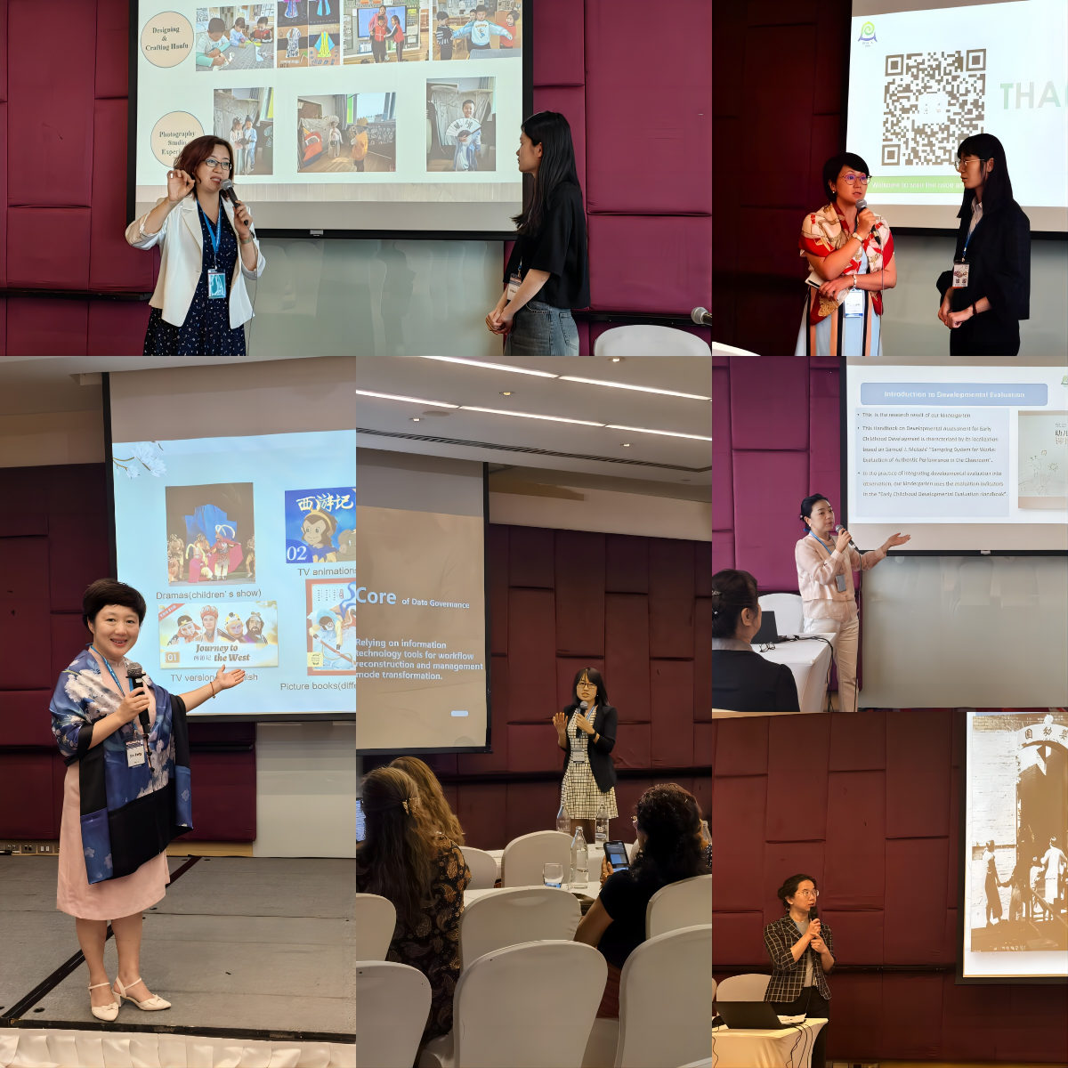 大会组织了丰富多样的分享交流活动,包括主旨报告、分会场发言、专题研讨与学术海报等,为与会者提供了广阔的交流平台。夏华颖总园长带领参会教师与来自世界各地的同行们围绕“儿童为本,环境育人”“家长参与评价,促进幼儿讲述能力的提高”“在《评估指南》指引下,以导师制发挥一级教师专业引领作用的实践探索”“中华优秀传统文化融入幼儿园角色游戏的课程实践研究”“将发展性评价融入观察,促进教师专业成长”“让中国传统经典走进幼儿园--以《西游记》为例”“新时代学前儿童爱国主义教育实践探索”“以办园质量督导评估为契机提升园所办园质量的路径”“建构多层次的幼儿教师专业发展共同体”“幼儿园组织管理数字化转型:信息技术应用及变迁机制”10个主题展开了深入分享与交流,充分展示了我园在环境育人、幼儿发展性评价、教师专业培养、中华传统文化融入、爱国教育实践、办园质量提升策略及组织管理数字化转型方面的经验与成果,赢得了同行们的高度赞誉和关注。