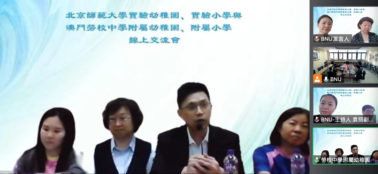 2023年5月16日,正规滚球app官方网站、实验小学与澳门劳校中学附属幼儿园、附属小学第一次线上会议成功举办。澳门劳校中学校长郑杰钊、澳门劳校中学副校长邵朝霞、正规滚球app官方网站总园长黄珊、滚球app实验小学校长吴建民、澳门劳校中学附属小学主任李雪梅、澳门劳校中学附属幼儿园副主任张嘉玲等出席会议。北京师范大学教育学部教师教育研究所副所长袁丽副教授主持会议。