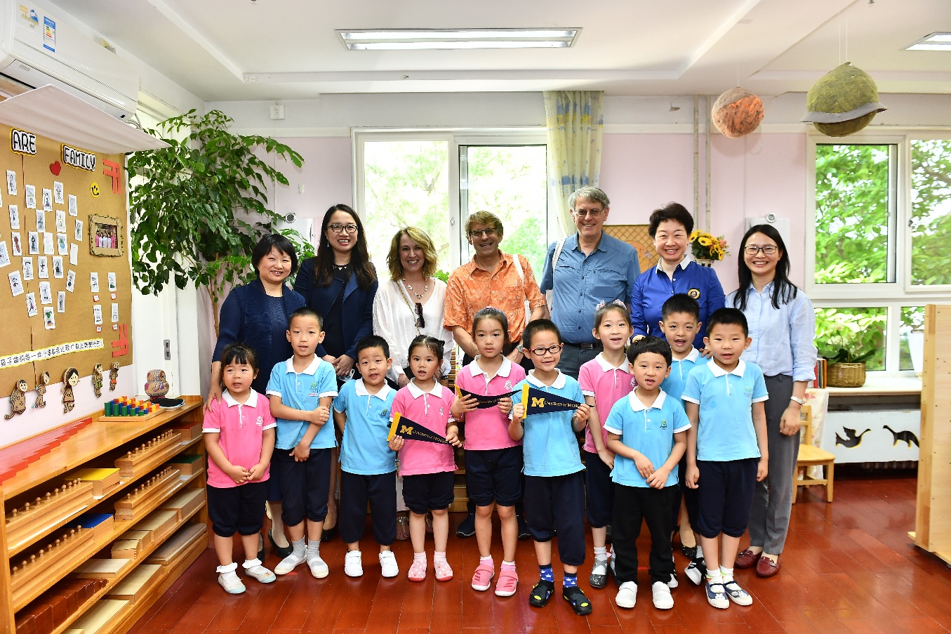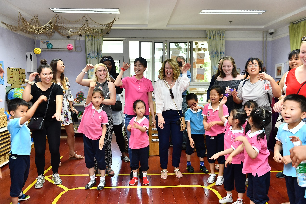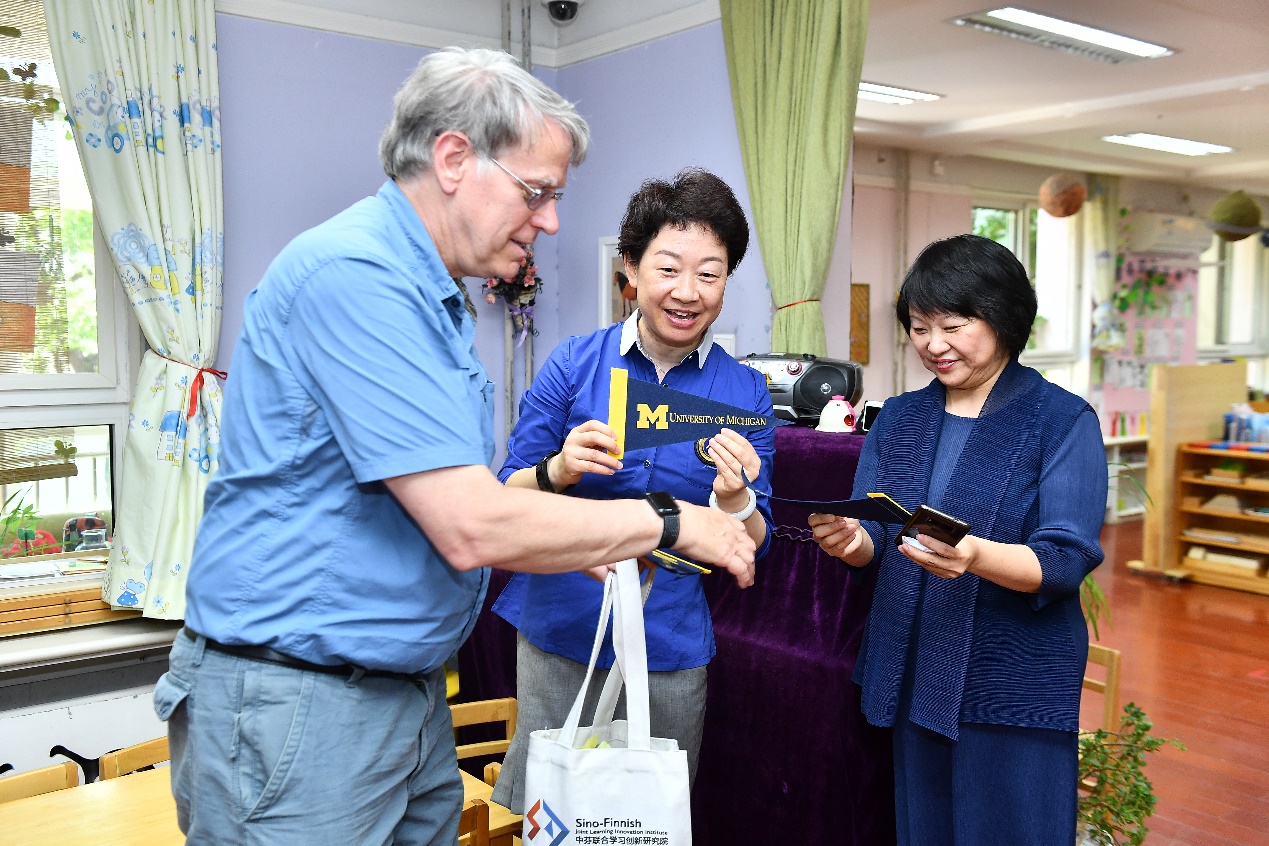 2019年5月27日,美国密歇根大学心理系、教育系教授Kevin Miller、教育学院院长Elizabeth Moje教授带领密西根大学学生一行18人参观了我园,滚球app心理学部副部长王君陪同。黄珊总园长热情接待了来宾,给来宾做了我园的总体情况介绍,随后,黄珊总园长与校本部执行园长杜军带领来宾参观了图书馆、公共环境并进入班级实地观摩,与孩子们交流互动。最后,在友好的氛围中双方领导互赠礼物,合影留念。