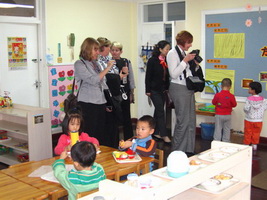 前来参观的代表团成员为来自澳大利亚各州读写教育方面的教授、校长和教师。总园长黄珊、本园园长杜军、科研室主任田瑞清、全托部主任高以华以及培训部助理董佑静接待并与参观者进行了座谈,代表团成员对我园“阅读课题”以及蒙氏班读写教育的开展情况表现出浓厚的兴趣。之后,代表团又兴致勃勃地参观了我园图书馆和部分班级,对我园在读写教育方面的工作给予了很好的评价。