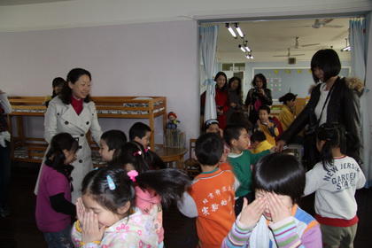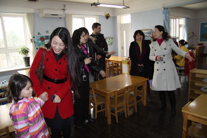 之后,他们参观了楼道环境布置,观看了大一、大二班孩子们的活动及早操,最后参观了图书馆。Paola Valero教授动情地对黄园长说:“看了您的幼儿园,我非常想把我的孩子送来这里学习”。