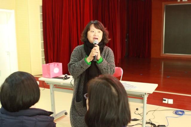 总园长黄珊向客人致欢迎词并就提出的问题进行交流