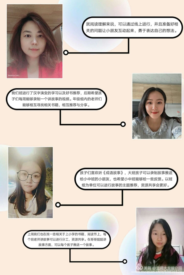 为了引导家长在家更好的指导和帮助幼儿,让幼儿更加顺利的渡过幼小衔接阶段,大班组全体老师在园长和保教主任的带领下进行了多次主题式的云教研活动。