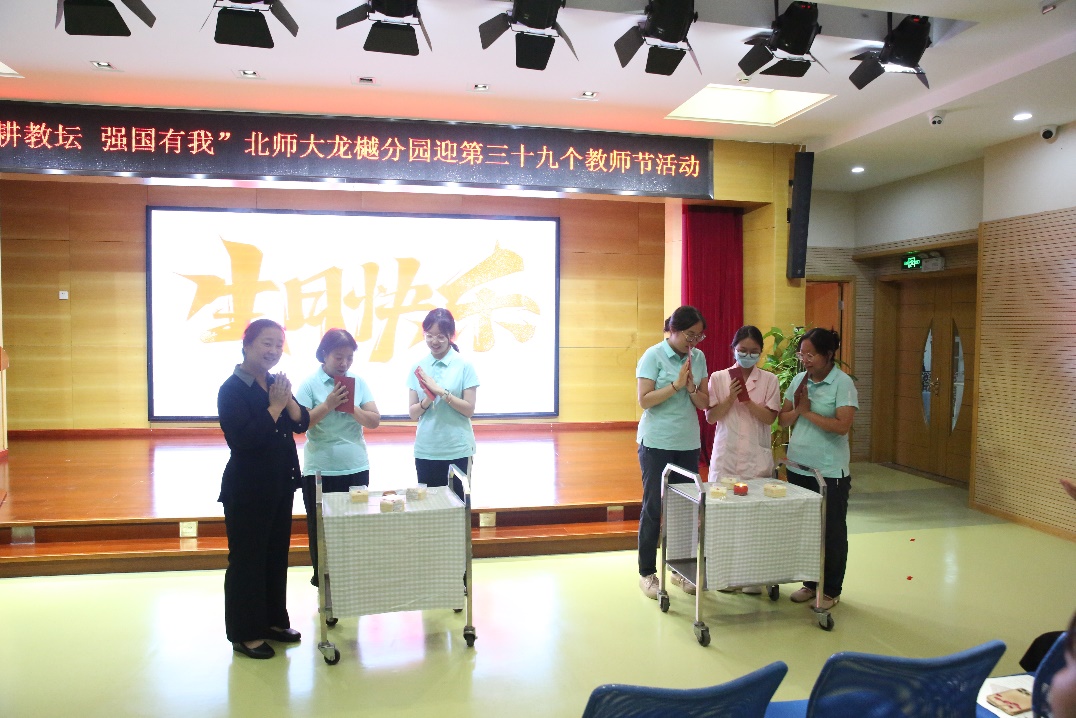 山水有时尽,师恩日月长。在这个充满期待的金色季节里,滚球app共同迎来第39个教师节。为弘扬尊师重教光荣传统,激励全体教职员工敬业奉献,2023年9月8日晚间,龙樾分园全体教职员工齐聚多功能厅,一起庆祝这个幸福而又神圣的节日。