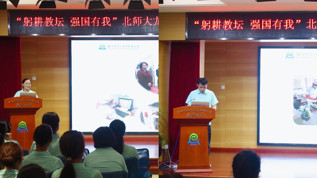 两位老教师结合自己在师大幼儿园工作生活的经历,回顾了自己在这里的成长与变化,表达了对这个温暖的大集体深刻的感恩与谢意。最后,全体老师在教研员瞿露老师的带领下一起重温了正规滚球app官方网站入职誓词,重拾当年选择教育行业,选择正规滚球app官方网站的初心。
