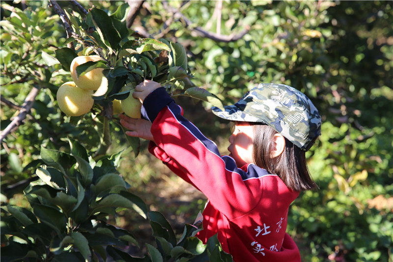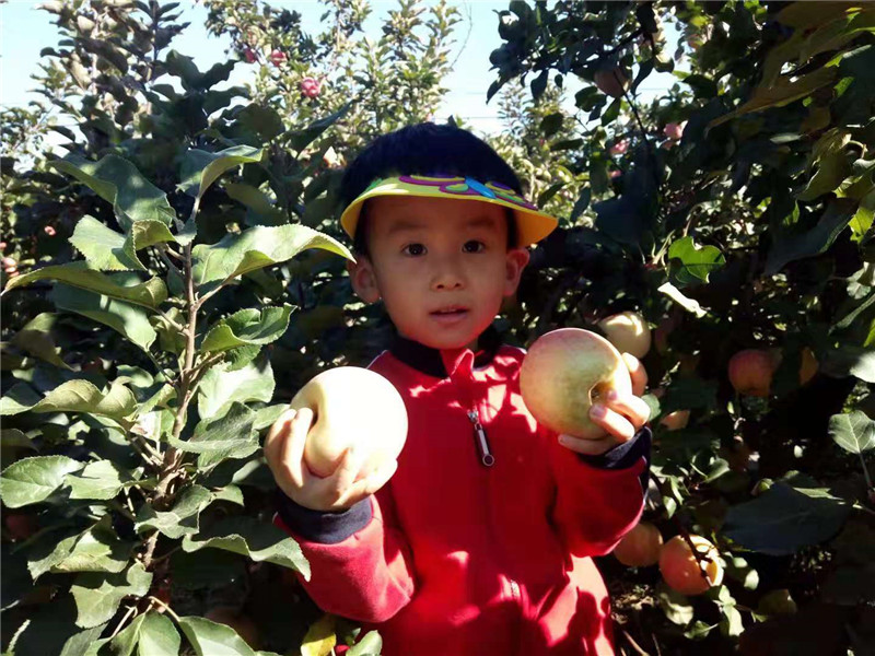 亲手摘的苹果,尝一尝,甜到心里去啦!