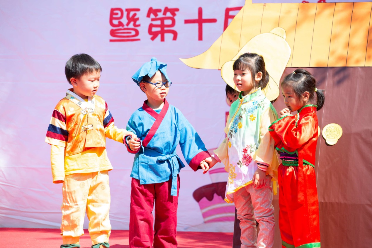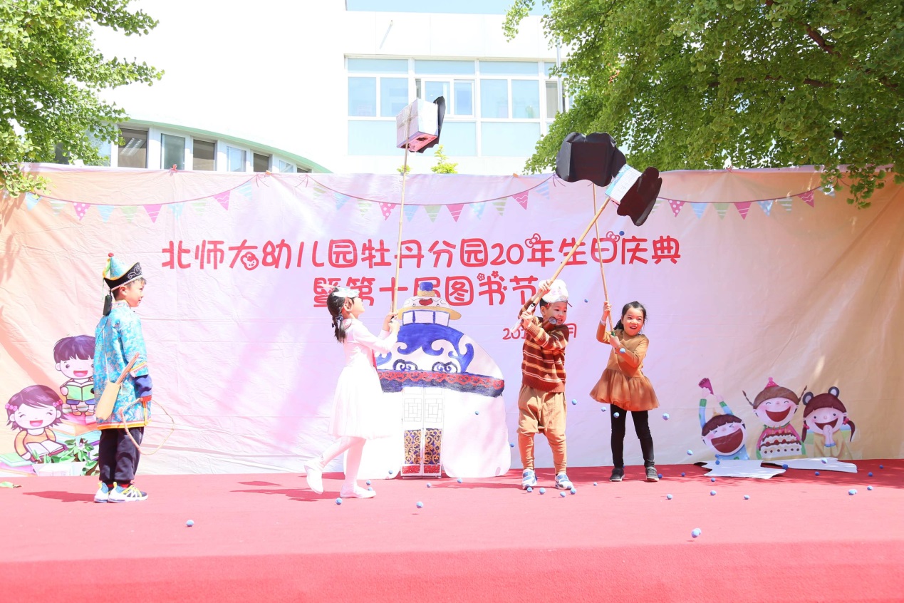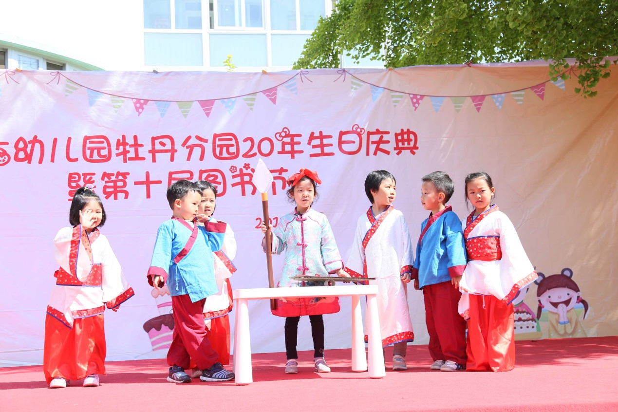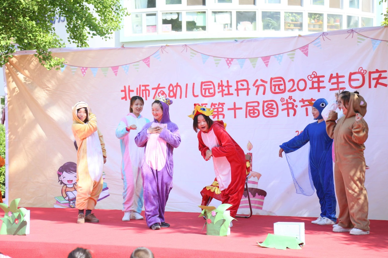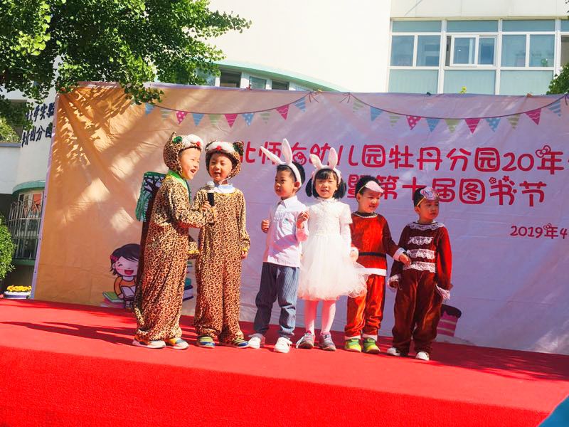 图书节中最高潮的活动莫过于全园所有小朋友的童话剧表演,16个班的每一位小朋友都会登台哦。他们跟着自己的老师一起选出自己最喜欢的故事、自编剧本、自制道具、演给小观众,和大家一起分享源自图画书的快乐!一年一度的大戏就此拉开帷幕……