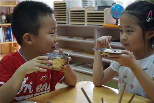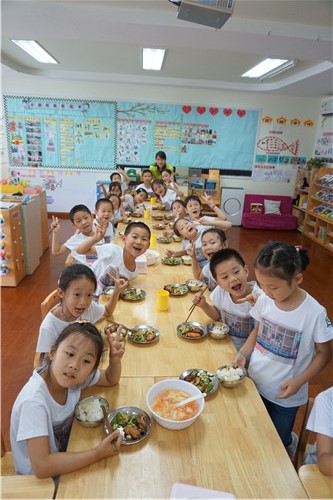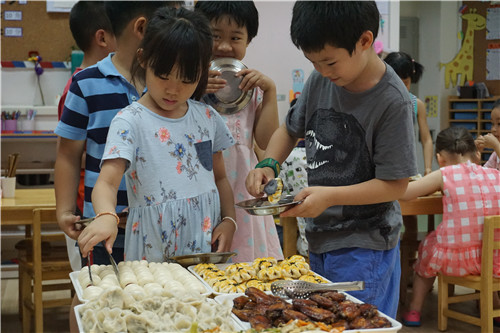 2017年6月29日中午,牡丹分园全体大班幼儿在毕业之际,尽享毕业大餐,让美食与成长作伴,使回忆定格在那让人垂涎欲滴的幼儿园味道。