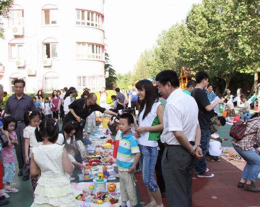 “六一”来临,牡丹园的孩子们进行了“儿童用品跳蚤市场”体验活动。在幼儿园操场中设摊摆放儿童物品(衣物、玩具、用具、图书等),进行交易活动。旨在让孩子们通过切身实践和体验,培养孩子们物品再利用的环保品质、主动表达、与人交往的能力。