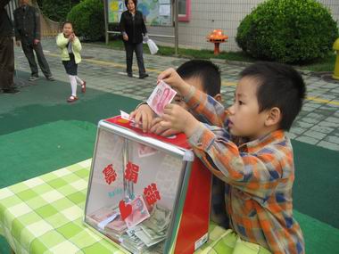 截至到2008年5月16日短短两天时间,我园幼儿和家长向灾区募捐金额共计30884元,教职员工募捐金额共计9520,滚球app将与家长代表一同将募捐款额捐赠给中国青少年基金会,对受灾儿童进行救助。