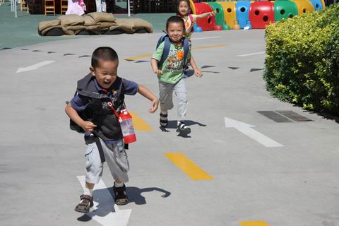 孩子们背着书包、水壶,奔向心仪的游艺项目
