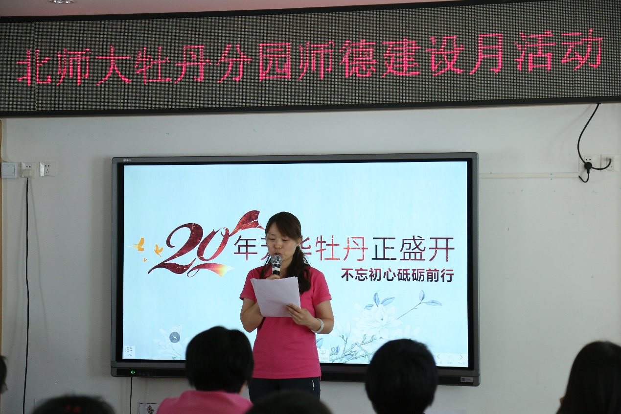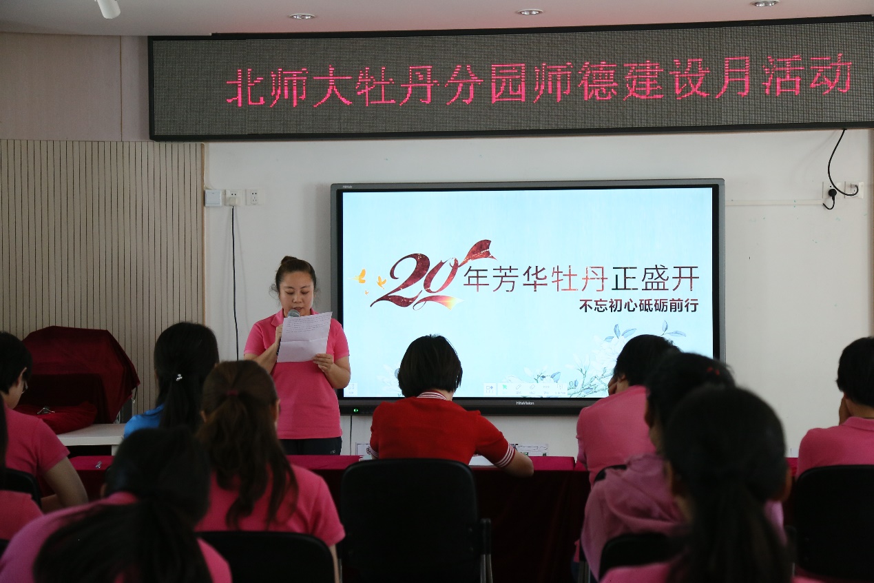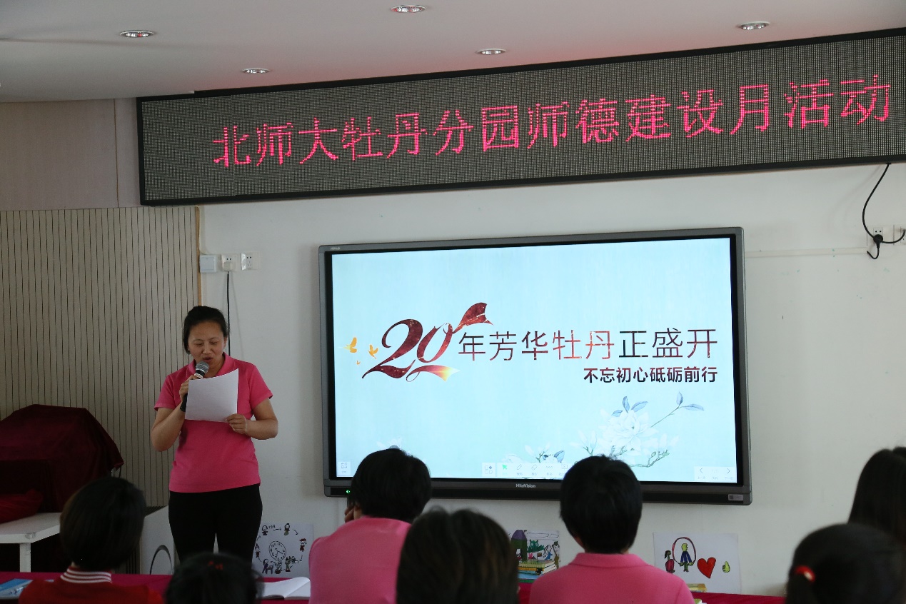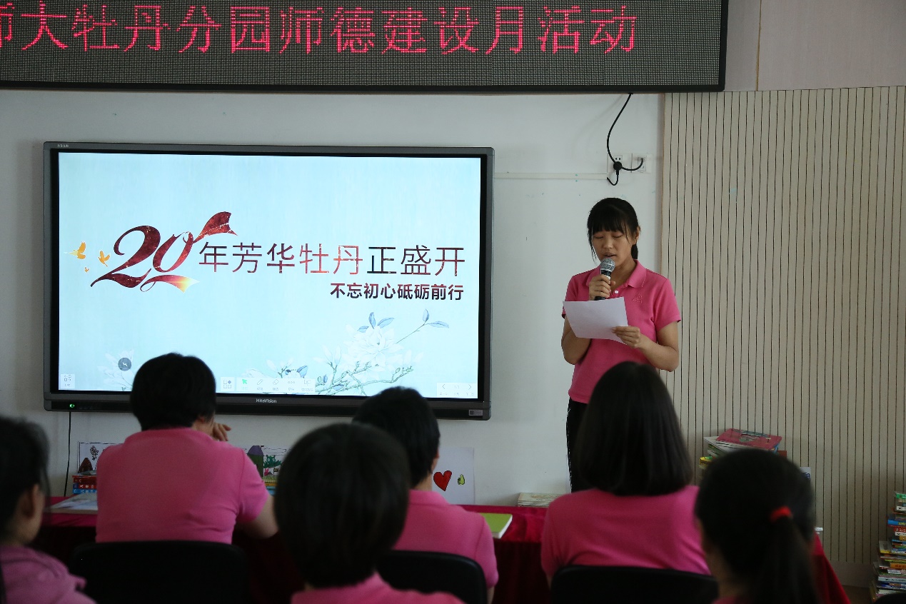 蒙养百年,倡导开新;牡丹廿载,继往开来。值此五四爱国运动100周年,牡丹分园建园20周年之际,牡丹分园开展“20年芳华牡丹正盛开,不忘初心砥砺前行”师德教育系列活动。团员教师、班长教师和有着36年教龄的王竺老师分别从自己的视角与大家分享了在北实幼大家庭成长、蜕变的故事。幼儿园还精心将教师们的成长故事或经验分享集结成册,方便教师们在日常生活和工作中共享智慧,相互学习。