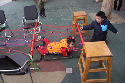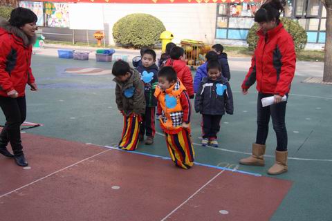 经过一段时间的冬季锻炼之后,牡丹园分园中大班和婴小班年级组先后举行了形式多样的冬季运动会。随着孩子们嘹亮的口号声,伴随着《运动员进行曲》的豪迈音乐,运动会拉开帷幕。在集体热身、韵律操之后,孩子们生龙活虎地参加了各项体能游艺活动。活动项多达数十种:翻越障碍赛、彩虹桥、云梯时光隧道、穿越封锁线、负重运球比赛、双脚连续跳、跨跳、空中投球、喂动物、打靶等等。此次冬季运动会既锻炼了幼儿体能又培养了孩子热爱体育活动的兴趣。